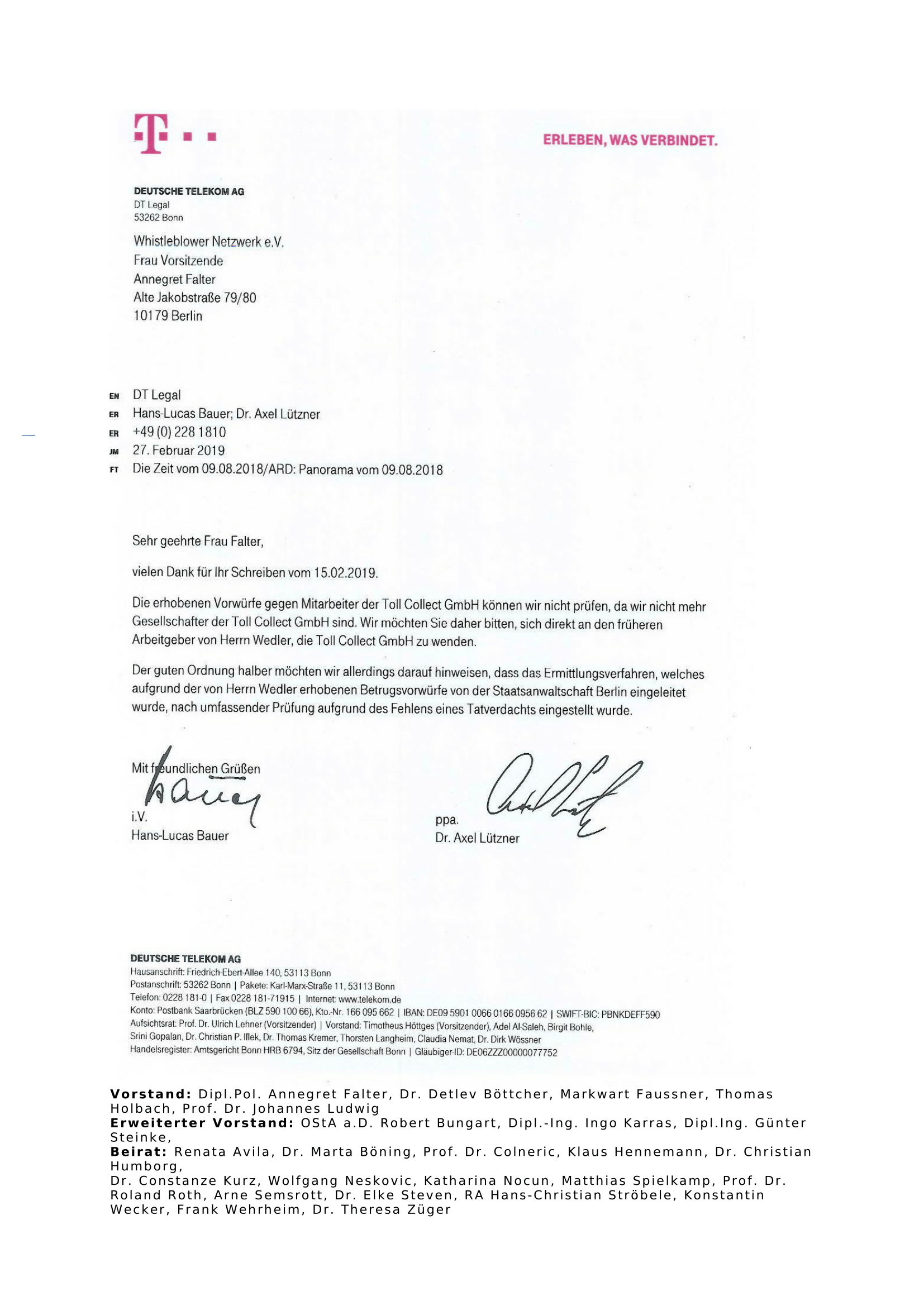 Im Fall des ehemaligen Toll Collect-Mitarbeiters und Whistleblowers Joachim Wedler bemüht sich Whistleblower-Netzwerk seit Monaten um einen Ausgleich für die ihm entstandenen finanziellen Schäden.